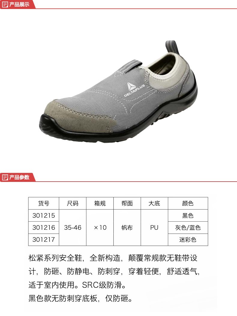 代爾塔 勞保鞋 301216產(chǎn)品型號(hào):