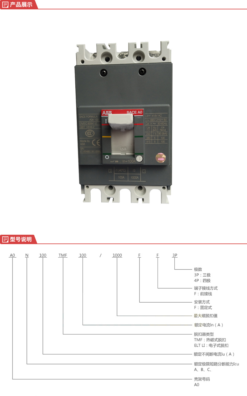 ABB 塑殼斷路器 A0A100 TMF1001000 FF 3P產(chǎn)品型號(hào):