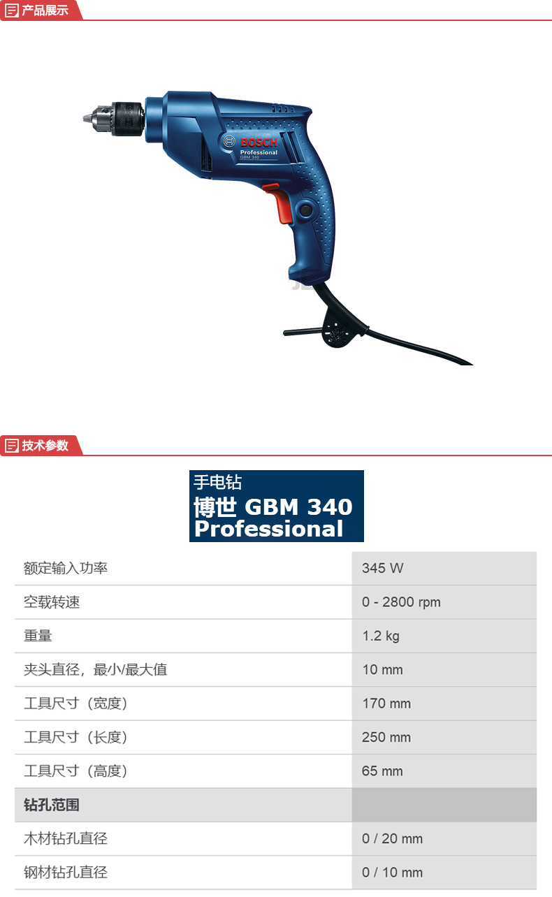 博世(BOSCH) 345W手電鉆產(chǎn)品型號(hào):